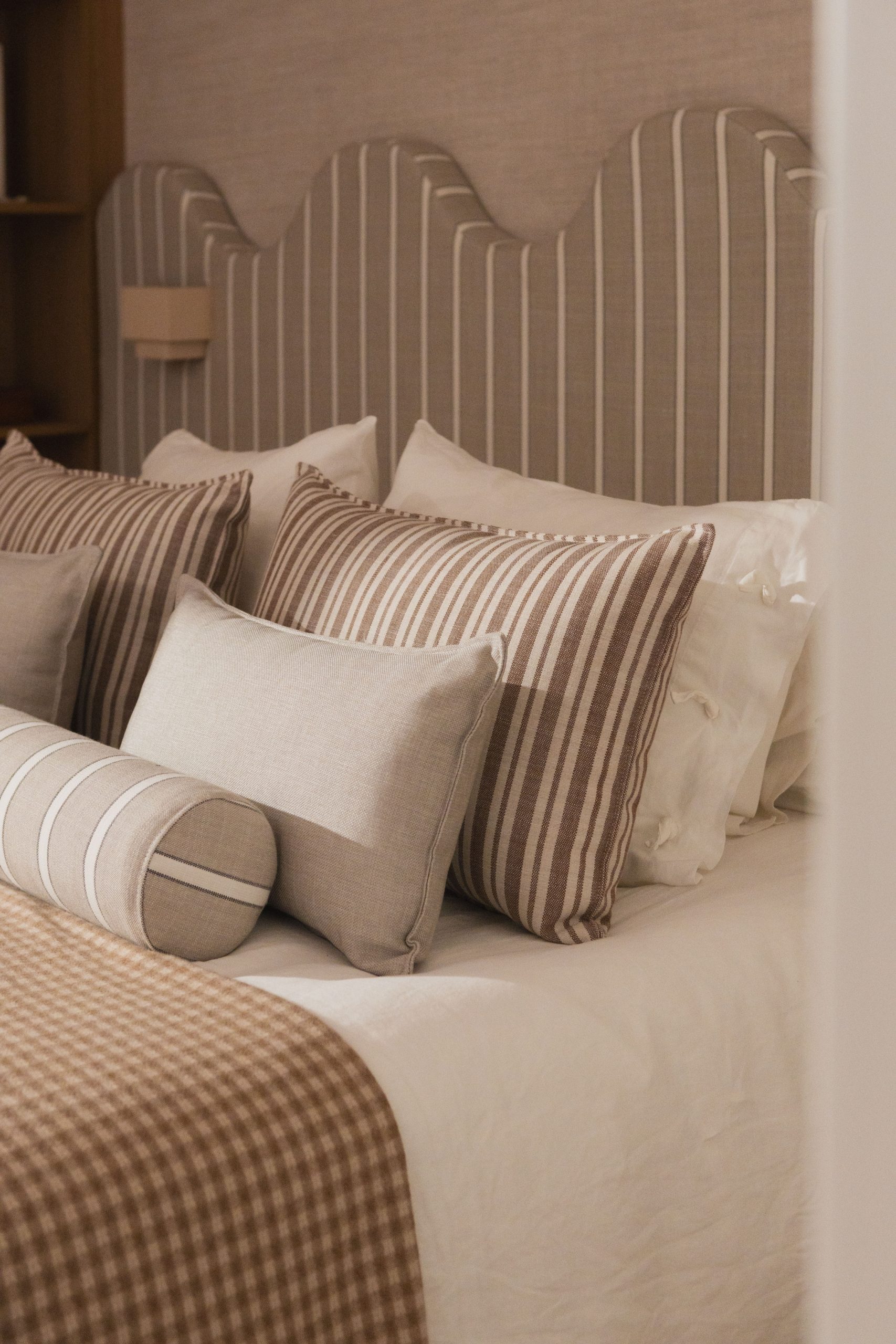 Los dormitorios se conciben como refugios tranquilos. Los textiles, papeles pintados y tejidos naturales suavizan la arquitectura y aportan confort visual, generando ambientes íntimos donde la calma y la textura son protagonistas.